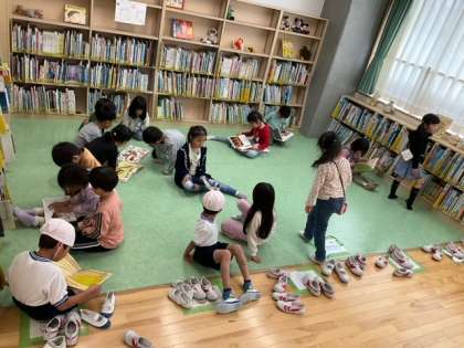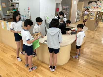 朝まで降った雨で、校庭遊びができません。図書室開放をたくさんの子どもたちが利用しています。