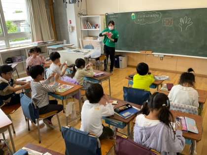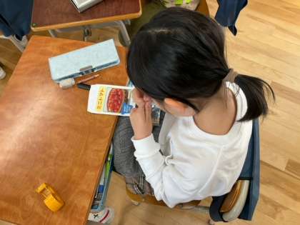 生活科の時間です。これからミニトマトの種をまきに行きます。