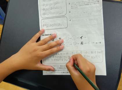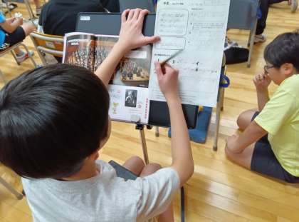 音楽の時間です。オーケストラのひびきを感じながらホルスト作曲の「木星」を聞きました。感じたことを自分の言葉で具体的に書いていることに感心しました。