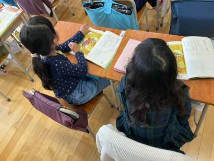 国語の時間です。「はなのみち」好きな場面を選んで音読してみましょう。