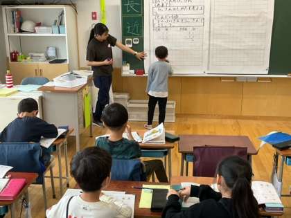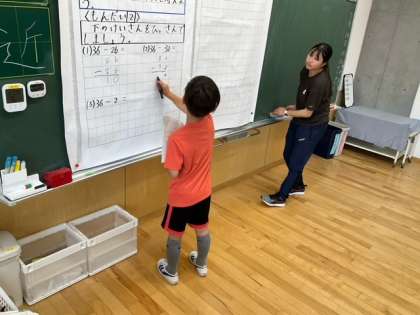 算数の時間です。ひき算の筆算の仕方を考えています。位をそろえることが大切です。