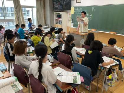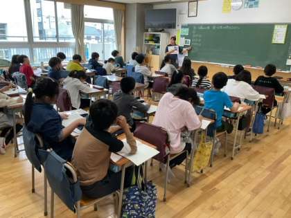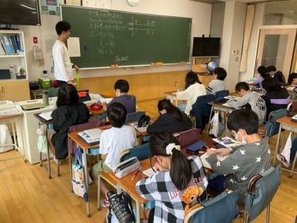 算数の時間です。「かけ算の世界を広げよう」小数のかけ算の学習に入りました。