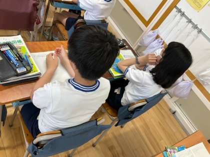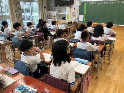 社会科の時間です。「自然条件と人々のくらし」沖縄県の観光と自然条件を調べていきます。
