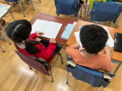 国語の時間です。誰が、何をしたのかに気をつけて、お話を読み進めていきましょう。