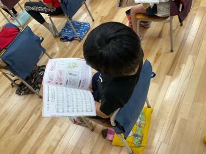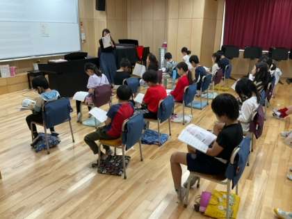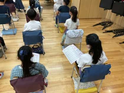 音楽の時間です。8分の6拍子の学習をしています。上手くリズムがとれるかな?