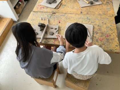 図工の時間です。「今の気持ちを形に」今の自分の気持ちに形に表してみます。どんな形になるのでしょうか?