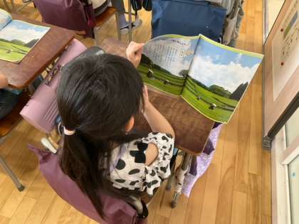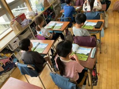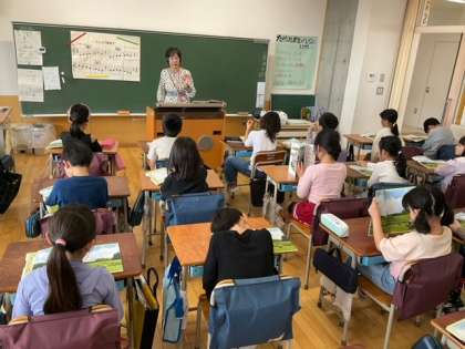 音楽の時間です。「茶つみ」曲の感じをとらえて歌ってみましょう。