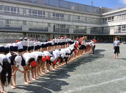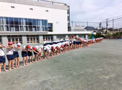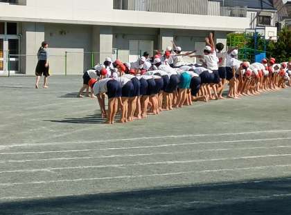 体育の時間です。みんなでつくる表現は難しいけれど、とても楽しそうです。