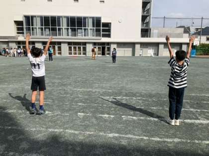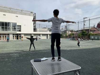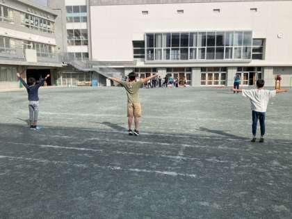 開会式後、プログラムナンバー1「ラジオ体操」の練習風景です。緊張しますね。