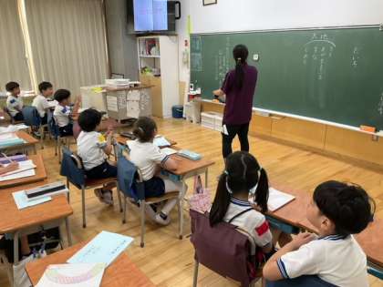 日本語の時間です。谷川俊太郎「だいち」を暗唱しています。情景を思い浮かべて