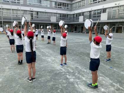 学年練習の時間です。3年生の演技「SPICE〜エイサーリミックス〜」です。太鼓の音や踊りが、心を震わせせます。