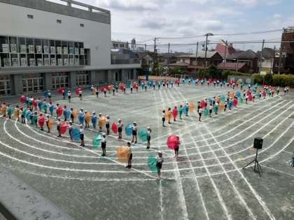 学年練習の時間です。2階ギャラリー席から見ると、この美しさです。