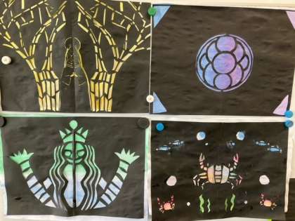 図工の時間です。「シンメトリア」すてきな作品が出来上がりました。校長室に飾りたいな!