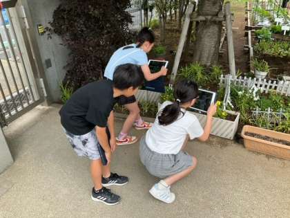 理科の時間です。「春をさがして」お気に入りを見つけたら、iPadでパチリ!