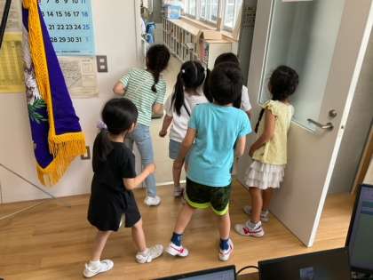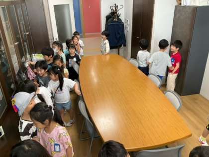 生活科の時間です。校長室って、どんなところかな? いつでも訪ねてきてくださいね。