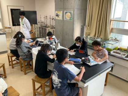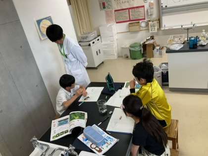 理科の時間です。「メダカの観察」をしています。オスとメスの違いに気づきましたか?