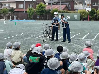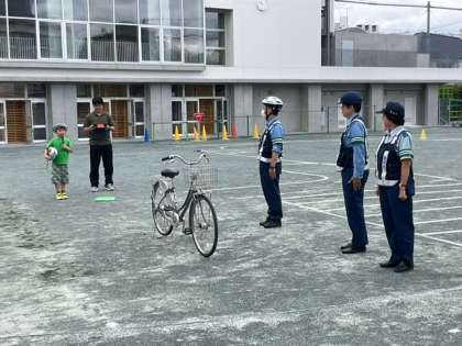 北沢警察の方を講師に、自転車安全教室を開催しています。安全で正しい自転車の乗り方を学習します。
