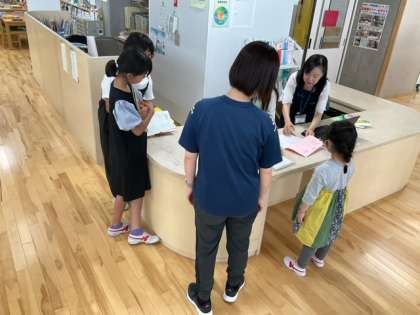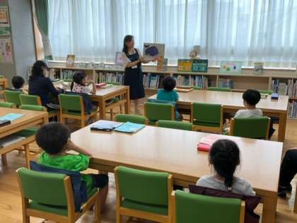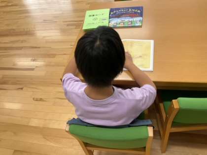 読書の時間です。読み聞かせも、本の貸し出しも、とても楽しみですね。