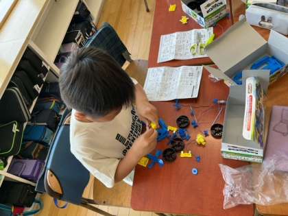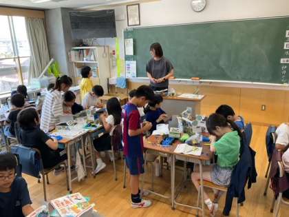 理科の時間です。「電気のはたらき」モーター作成中です。しっかり回りますように。