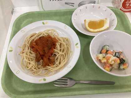 トマトクリームスパゲティ マセドアンサラダ 柑橘 牛乳