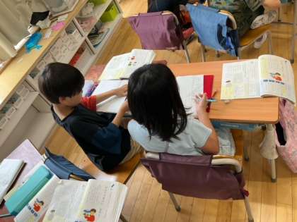 ?国語の時間です。「かんさつ名人になろう」観察したことから書くことを見つけ、必要な事柄を集めたり確かめたりする力を育てます。