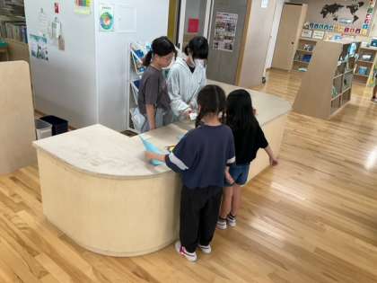 今日は体力テストのため、中休みの校庭あそびはありません。図書室開放が盛況です。図書委員のみなさんが、がんばっています。