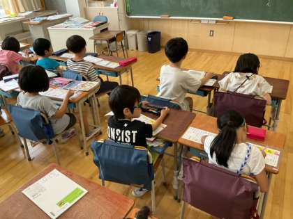 国語の時間です。新しい漢字の練習をしています。「鳥」「歌」画数が増えてきました。