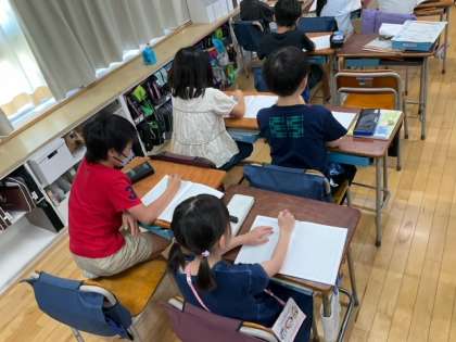 社会科の時間です。3年生は、町たんけんをしました。しっかり振り返りをしています。