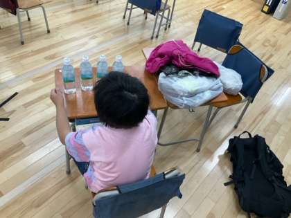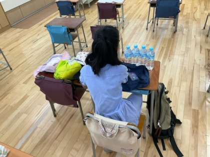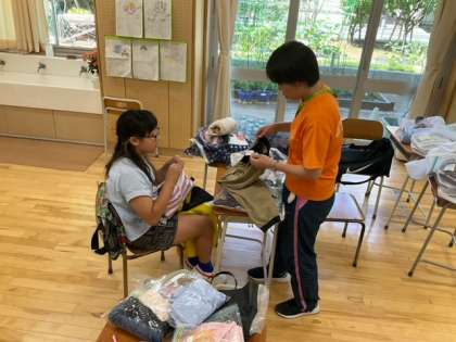グループ学習の時間です。高学年のみなさんは、来週の水曜日から河口湖連合移動教室です。荷物を確認しています。