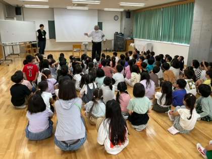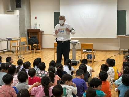 セーフティ教室の時間です。北沢警察署の方を講師に、「いかのおすし」について学んでいます。