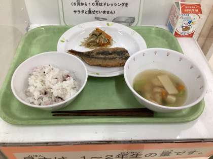 梅若ごはん 魚の竜田揚げ ナムル 吉野汁 牛乳