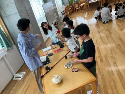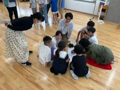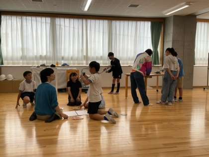 グループに分かれて、スイッチのアイデアを出し合っています。どんな即興劇が出来上がるのかな?