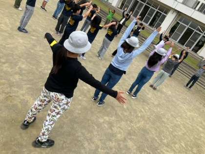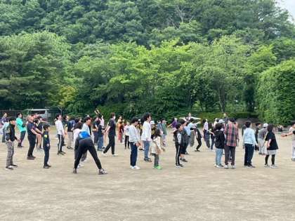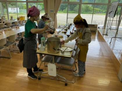 2日目の朝会です。食事係は、朝食の準備をがんばっています。