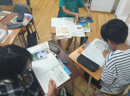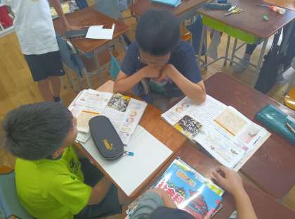社会の時間です。自治体が高齢者とどう関わっているか子育てにどう関わっているかをグループに分かれて調べました。