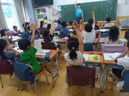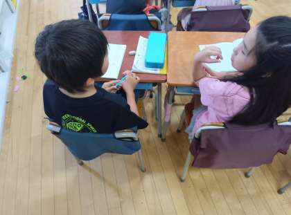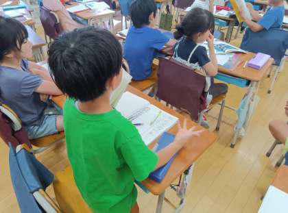 国語の時間です。どんな昔ばなしを知っているかペアで伝え合いました。これからの学習が楽しみになりました。