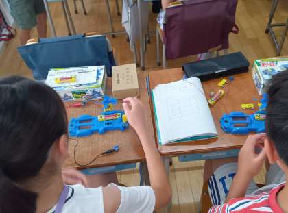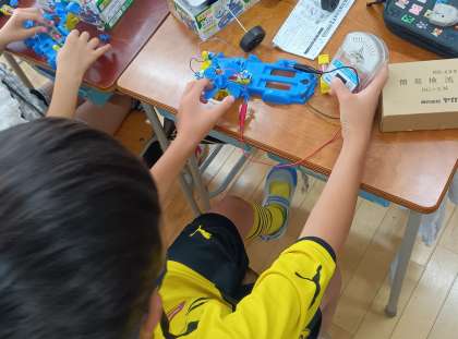 理科の時間です。検流計を使って電流の向きと強さを調べました。