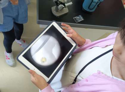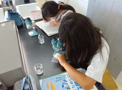 メダカの卵を顕微鏡で観察し、写真も撮って記録しました。メダカが生まれることを楽しみにしていました。