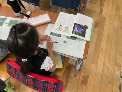 国語の時間です。「つぼみ」文章を読んで、問題・答え・説明を見つけましょう。
