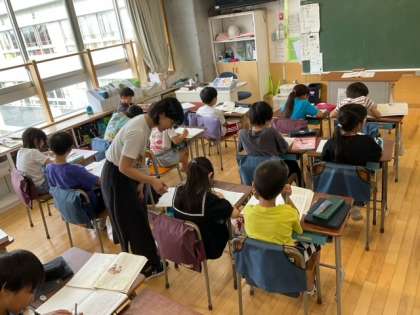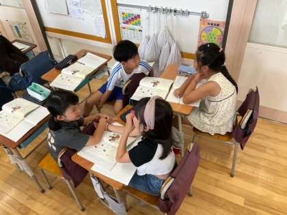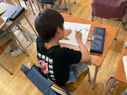 国語の時間です。「もっと知りたい、友だちのこと」話題を決めて、台本を書いています。