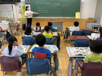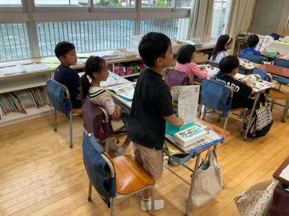図工の時間です。あいにくの雨です。遠足は、金曜日に延期します。気持ちを切り替えて、さあ勉強しよう!