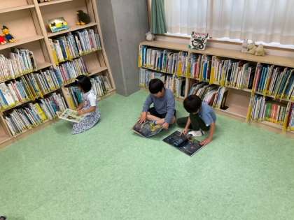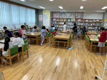 外はどしゃ降りです。図書室開放が大盛況です。雨の日に本を読んで過ごすのもいいですね。