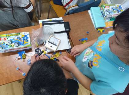 理科の時間です。直列つなぎと並列つなぎの回路に流れる電流の大きさを調べました。