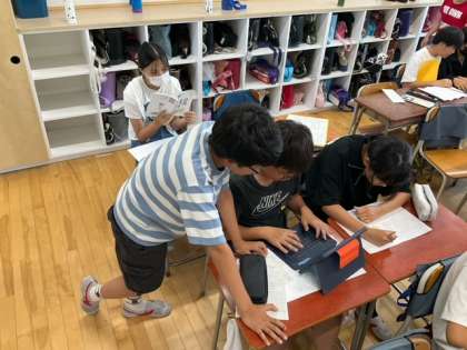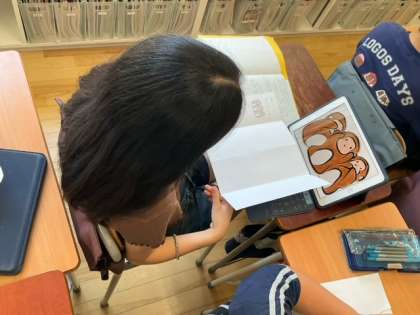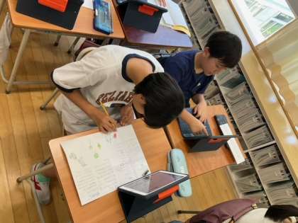 総合的な学習の時間です。「日光ワンダーランド」日光についていろいろと調べた後、パンフレットを作成しています。
