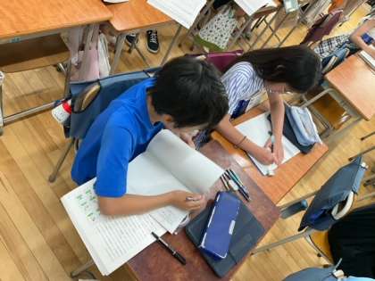 国語の時間です。「言葉の意味が分かること」文章全体の構成をしっかり捉えることで、要旨の把握がより確かなものになります。