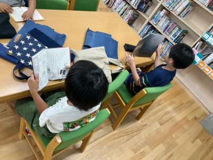 読書の時間です。すごく楽しそうに本を読んでいて、うれしいな。