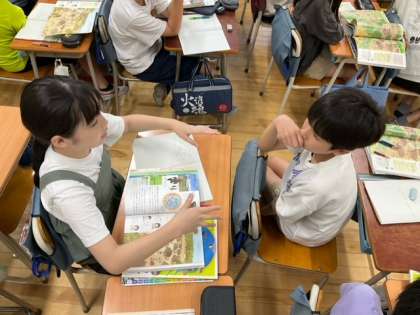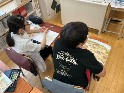社会科の時間です。「国づくりへの歩み」大昔の暮らしを探っていきます。