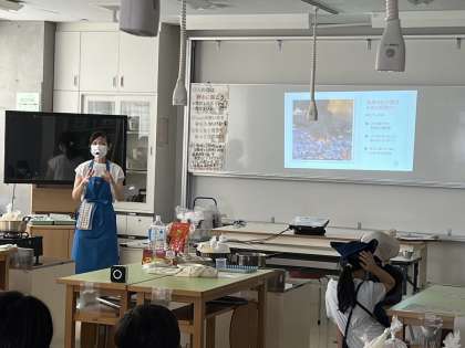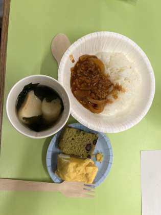 料理ができるまで、震災が起きたときの食についてお話を聞きました。料理がばっちり完成しました。美味しそうです。