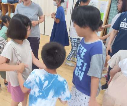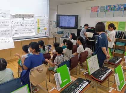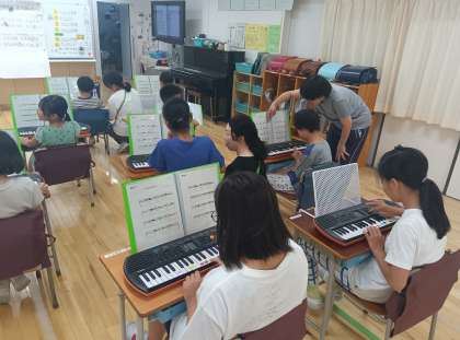 音楽の時間です。友達と合わせて歌うことを楽しんでいました。手話もとても上手です。