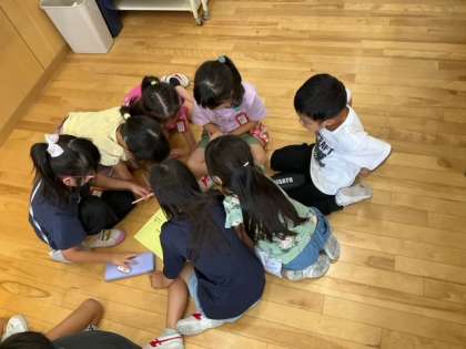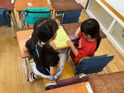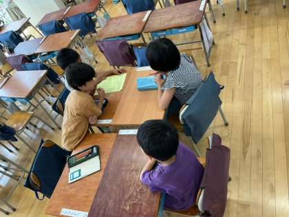 学級活動の時間です。クラスをもっとよくするために、係活動をがんばっています。