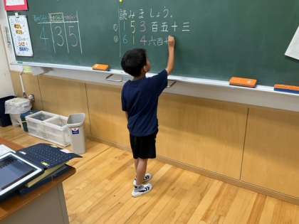 算数の時間です。「100より大きい数」3けたの数を読んでみましょう。